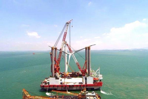 此次安裝完成的最后一臺(tái)風(fēng)機(jī)采用風(fēng)輪整體吊裝的方式,最大的難點(diǎn)為發(fā)電機(jī)需要單獨(dú)吊裝,同時(shí)還要專用吊具配合,以保證發(fā)電機(jī)與豎直面成6度的傾角,這對吊裝提出很高的要求。中鐵大橋局克服了施工當(dāng)中海上季風(fēng)等惡劣自然條件的影響,安全優(yōu)質(zhì)地完成了吊裝。